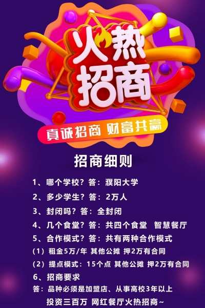 3.我方負責(zé)餐廳的大體裝修,廚房設(shè)備,大型廚房排煙系統(tǒng)以及桌椅櫈,然后根據(jù)投資金額簽訂與貴單位的經(jīng)營合同.........